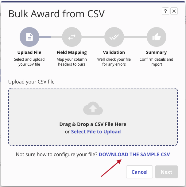 From here, you may download a Sample CSV file to see how to structure the data.