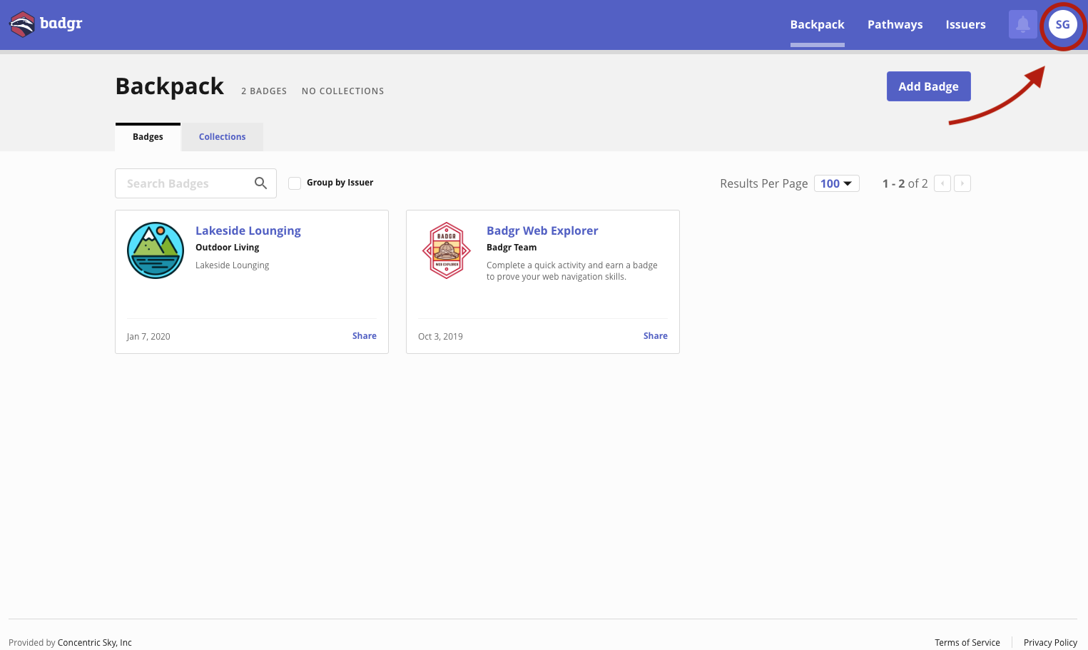 Sharing badges from Badgr
